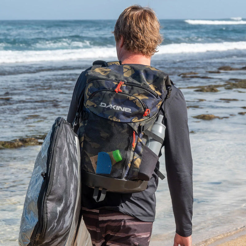 Si tienes la suerte de adaptarse al trabajo, la escuela y el surf en el mismo día, la Mission Surf es la mochila para ti. Model: D10003707Colour: Deep Blue. A no-nonsense pack for the committed surf commuter and weekend warrior alike, the 30-liter Mission Surf Pack has all the... Una bolsa extraíble para mojado/seco mantiene tus pantalones cortos y la parte superior separados de tu equipo seco. Mission Surf Pack 30L Black - Dakine Perú | Klimax Surf International Un panel de malla elástica en el exterior del paquete permite un secado rápido de artículos húmedos y un fácil acceso, y un bolsillo forrado de forro polar en la parte superior del paquete mantiene tus lentes de sol y artículos personales altos y secos. Un paquete sensato para el viajero de surf comprometido y guerrero de fin de semana por igual, el paquete de surf Mission de 30 litros tiene todo el almacenamiento que necesitas para patrullas frías del amanecer y sesiones soleadas de fin de semana.